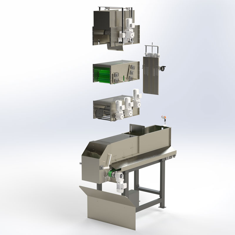 As a result of continuous development, the belt feeder can accurately dose very small quantities as well as products containing fibers. All parts in contact with the product are made of stainless steel, which makes the use of the machine very flexible.